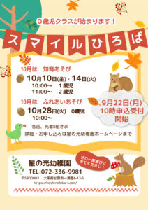 ※スマイルひろばの申し込みは9月22日(月)10:00からの先着順です。(各コース8組)