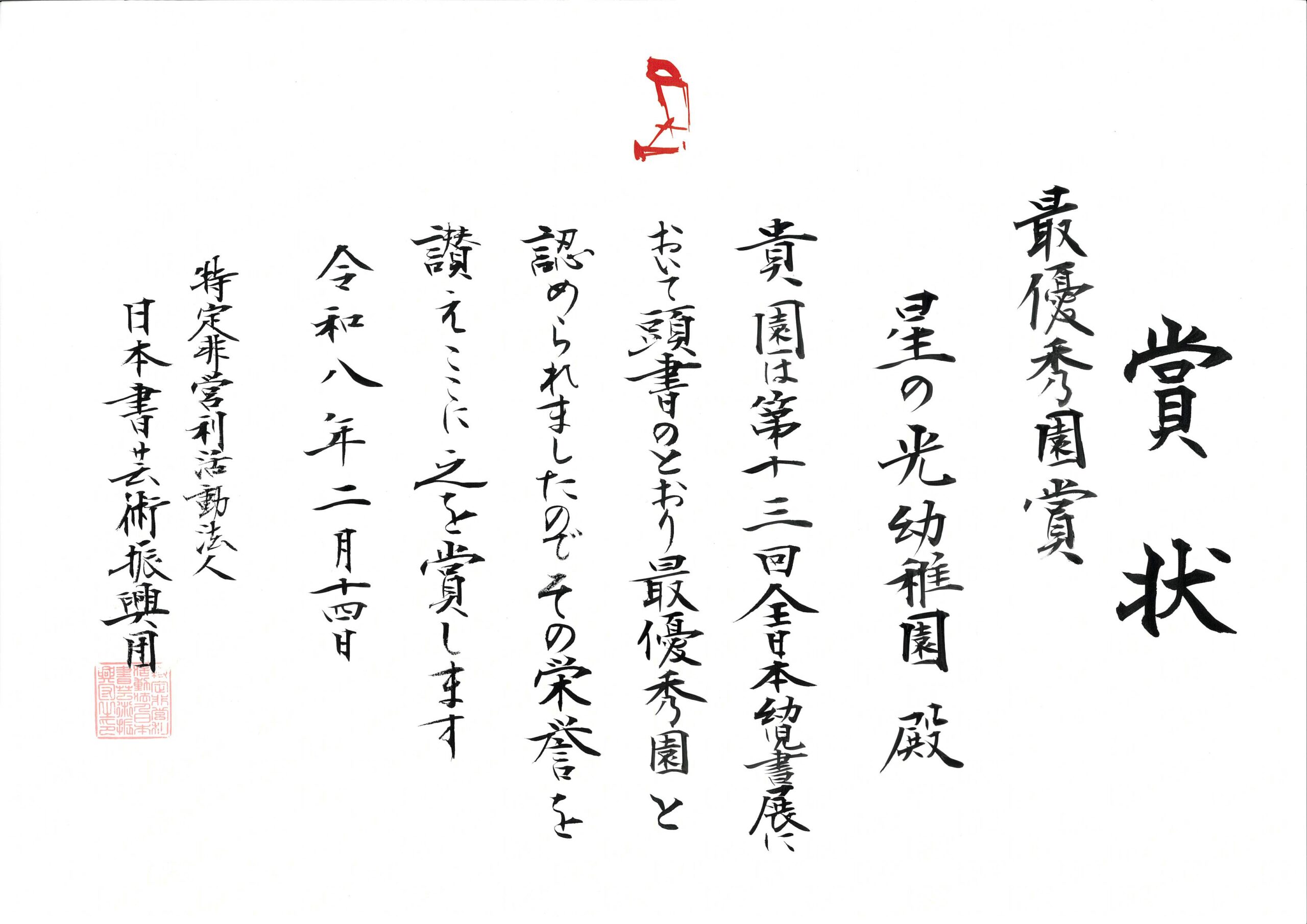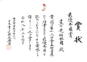 星の光幼稚園には、『最優秀園賞』もいただきました。
